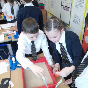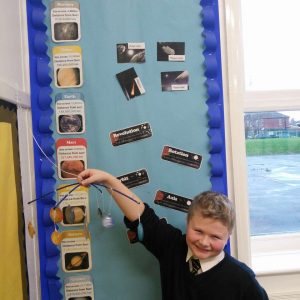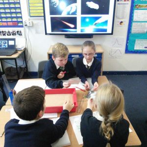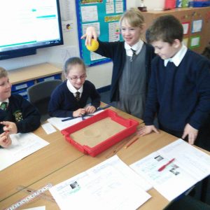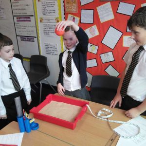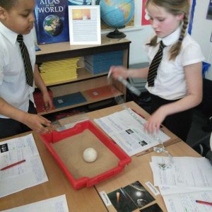 Year 5 have been learning about Space and have been finding out about the moon’s surface. This week, they planned an investigation to find how craters are formed and whether the distance a meteorite is away its surface, impacted on the size of the crater made. After ensuring it was a fair test and they had a clear method, each group worked accurately to measure and their record what they found out. Each group then imputed their results into a spreadsheet so we could work the class averages and draw a conclusion. As most children predicted, their results showed that the further a meteorite is away from the moon’s surface, the bigger the crater it will make. The experiment really showed the children the importance of comparing results and repeating an experiment more than once- just like real scientists do!