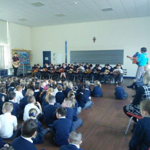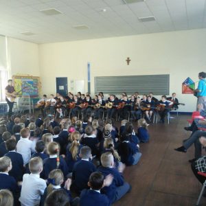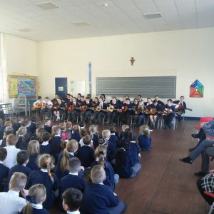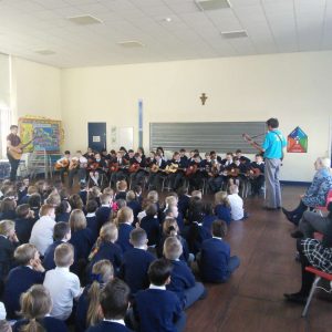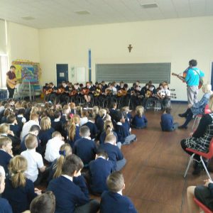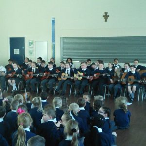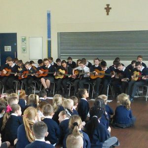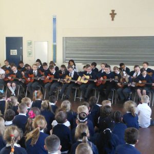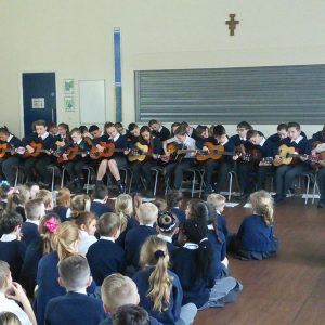 Since September, Years 5 and 6 have been receiving guitar and singing lessons from Tameside Music Service. For year 6 this is their second year and the first for year 5. They have learnt a number of pieces and some which have linked to their topics in history and geography such as WW2. To showcase to the school their talents they performed an assembly for the school in which they sang beautifully and played wonderfully. Well done to both year groups.