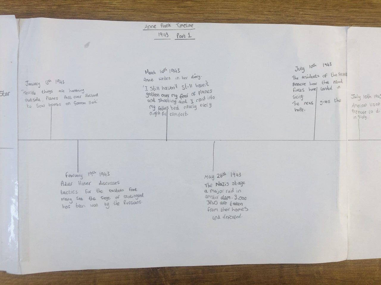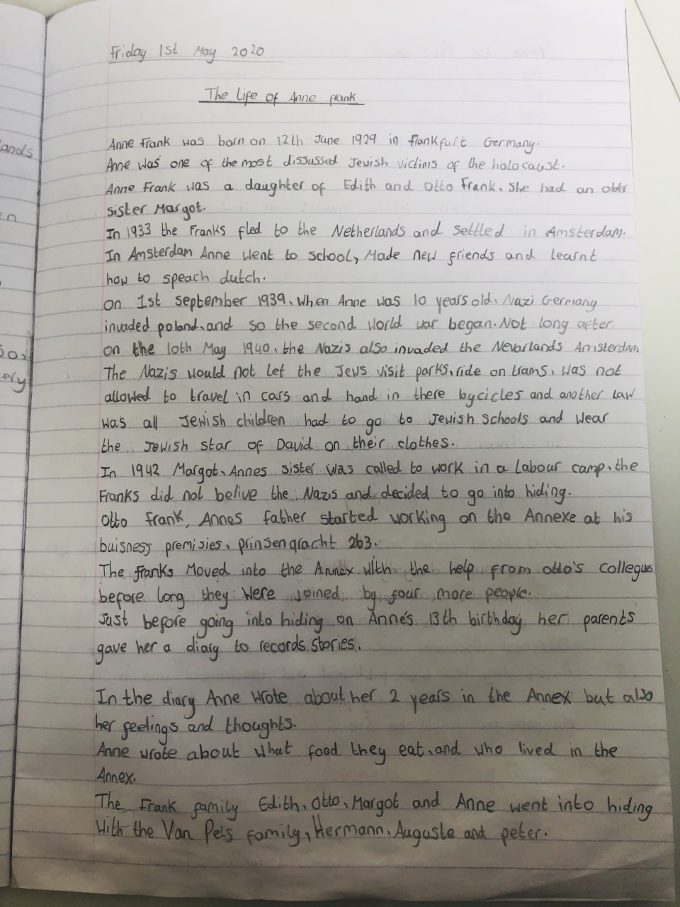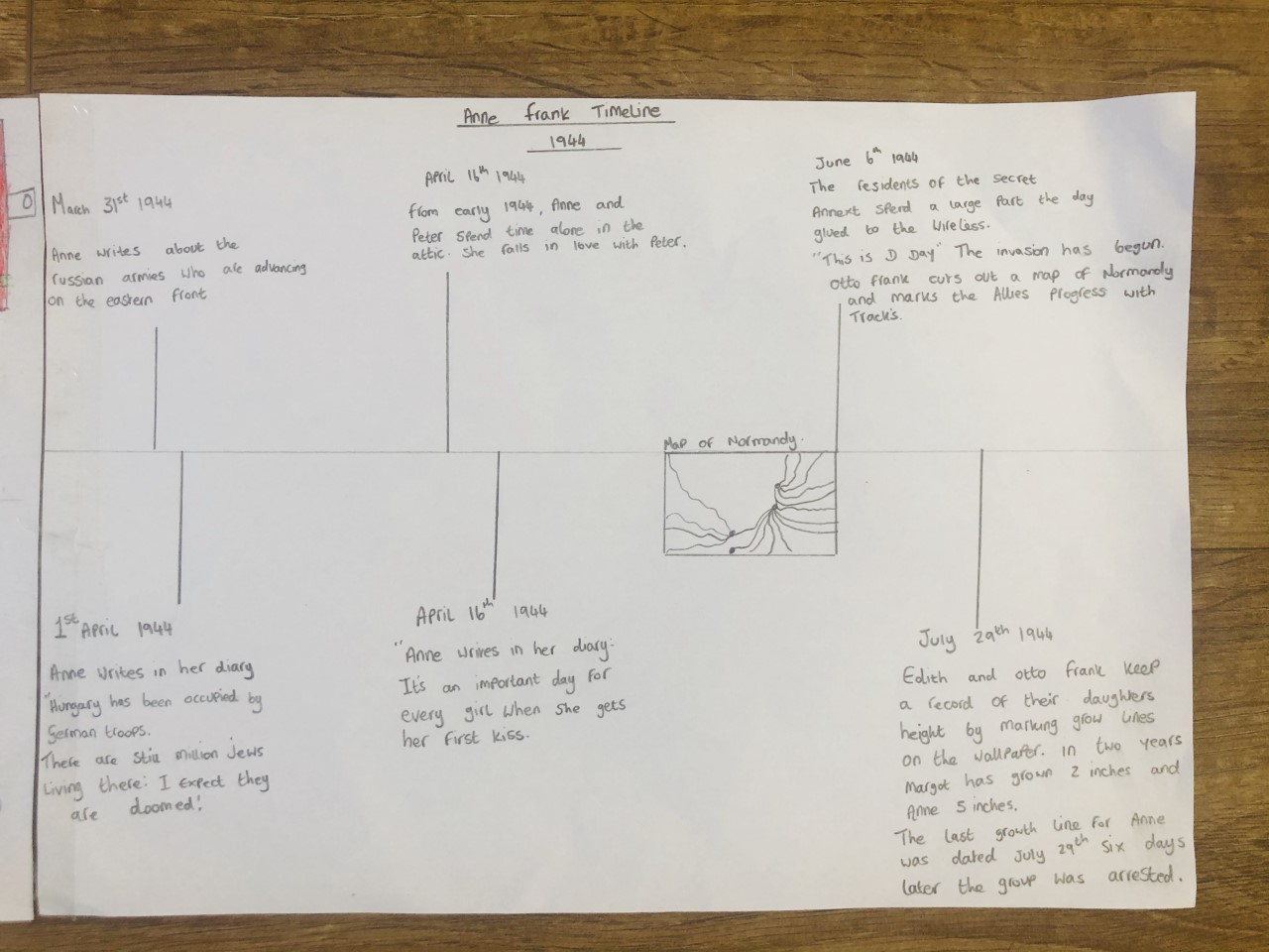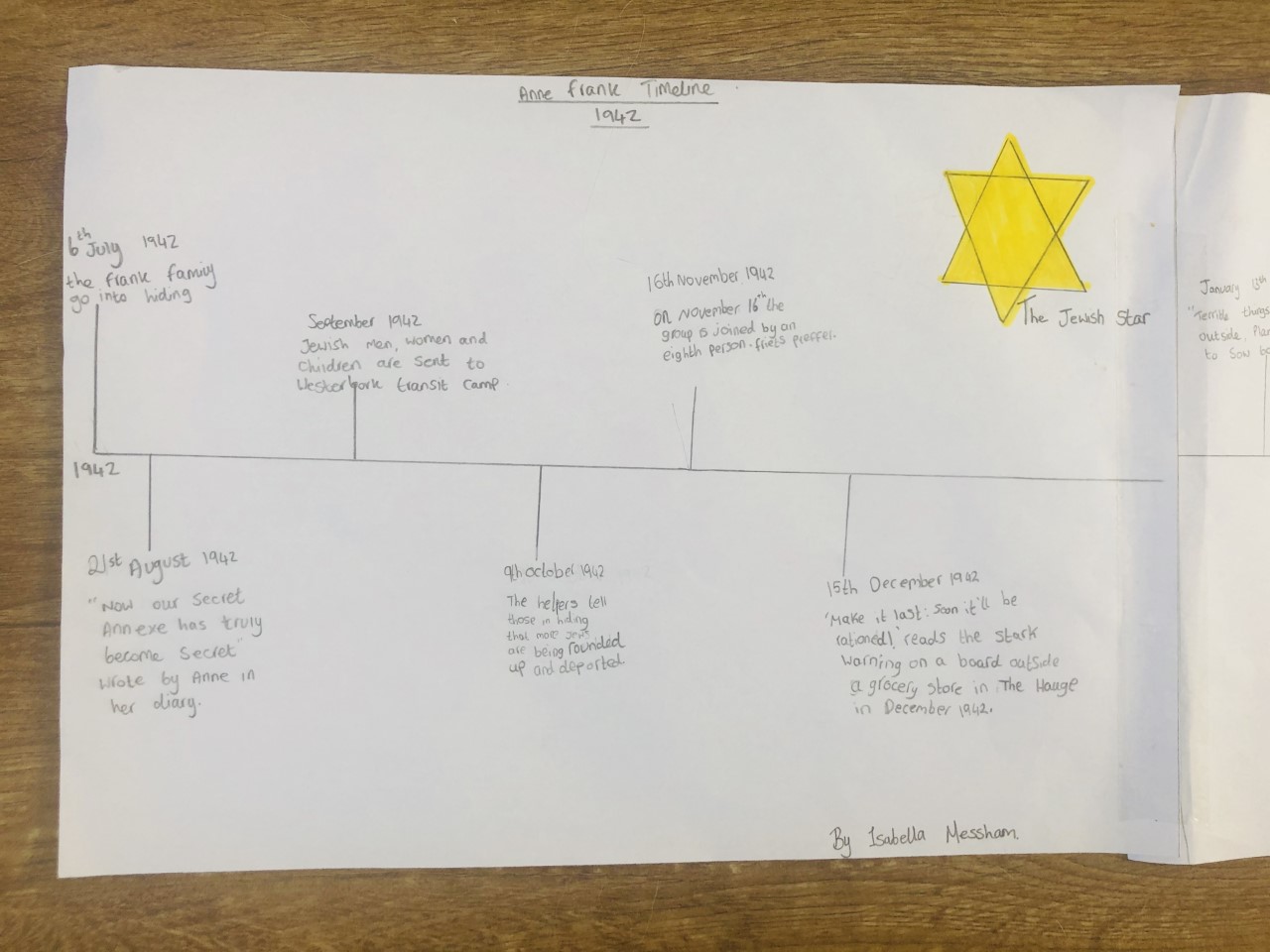 Anne Frank’s diary has been the topic for Isabella. She has put a lot of time and effort into creating a very detailed timeline of Anne Frank. She has also researched her life and read parts of her famous diary and wrote about her life. Very detailed and interesting work.