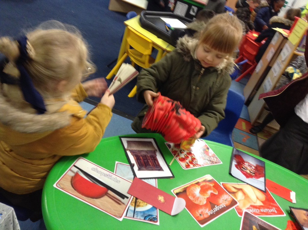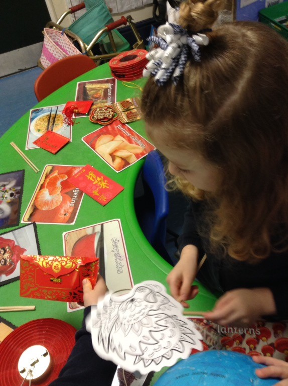Today we have been learning all about the Chinese New Year. We found out about the different ways that Chinese people celebrate the New Year and listened to the story about how the different years got their animal names: this is the year of the rat! In our class we have looked carefully at different Chinese artefacts: the children particularly liked the red envelopes which are given as gifts with money inside. In our maths area we have been having a go at writing some Chinese numbers. We have been very creative, making dragon masks, Chinese red lanterns and Happy New Year cards. We also enjoyed some Chinese food tasting. The jury is still out on sweet and sour sauce, but the prawn crackers were a big hit! Happy Chinese New Year to all who are celebrating.