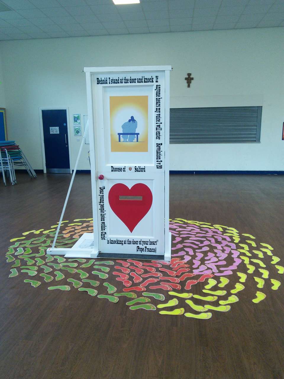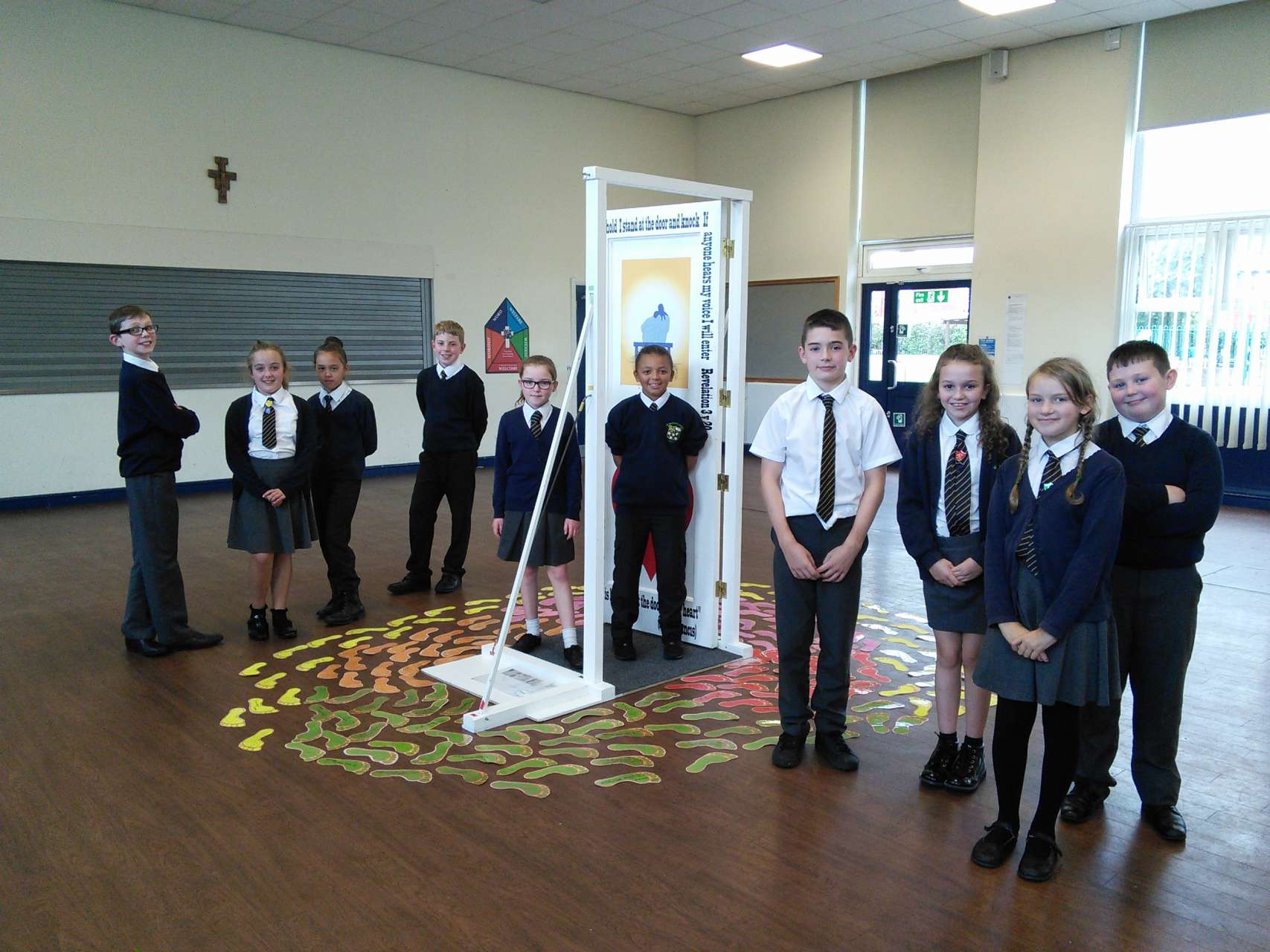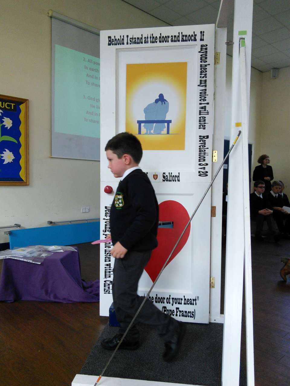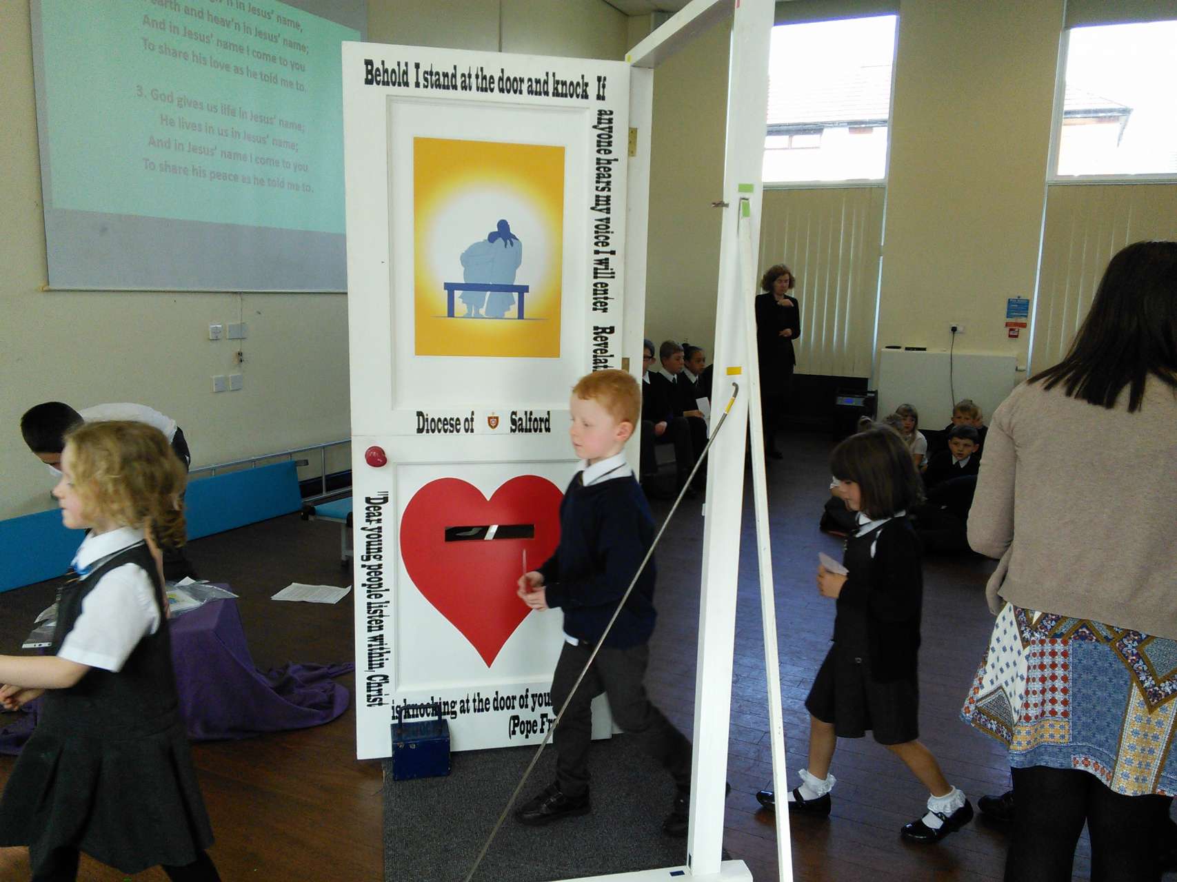 St. Mary’s welcomed the Door of Mercy to our school yesterday afternoon. The door, which was commissioned by the Pope in Rome has been travelling around the diocese from school to school over the recent months as part of the Church’s ‘Year of Mercy’. Children from year 6 led the school in a collective worship before each walked through the door and added their own prayer asking for forgiveness to the basket.