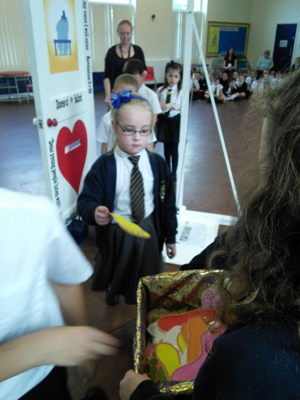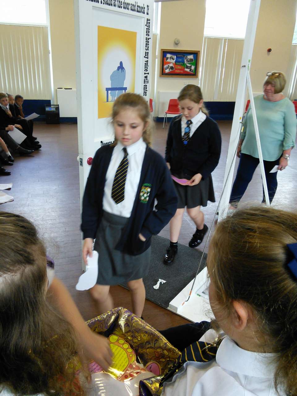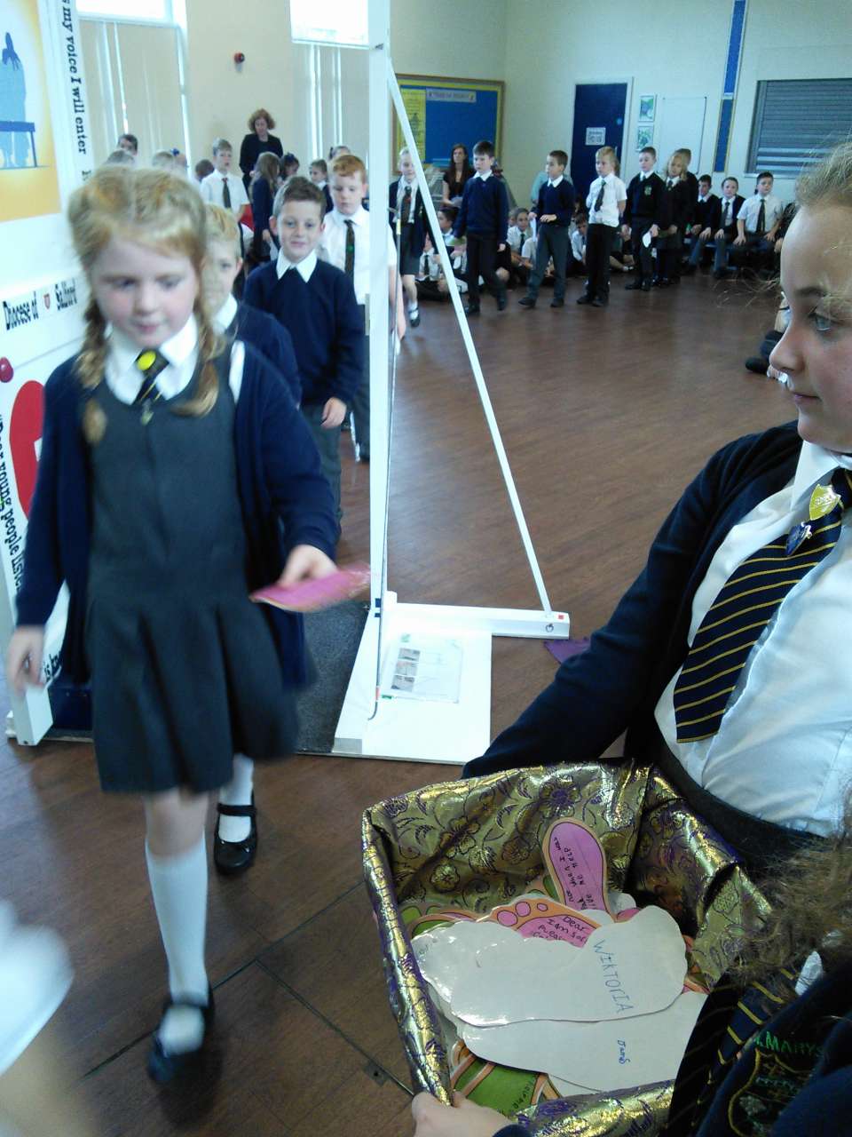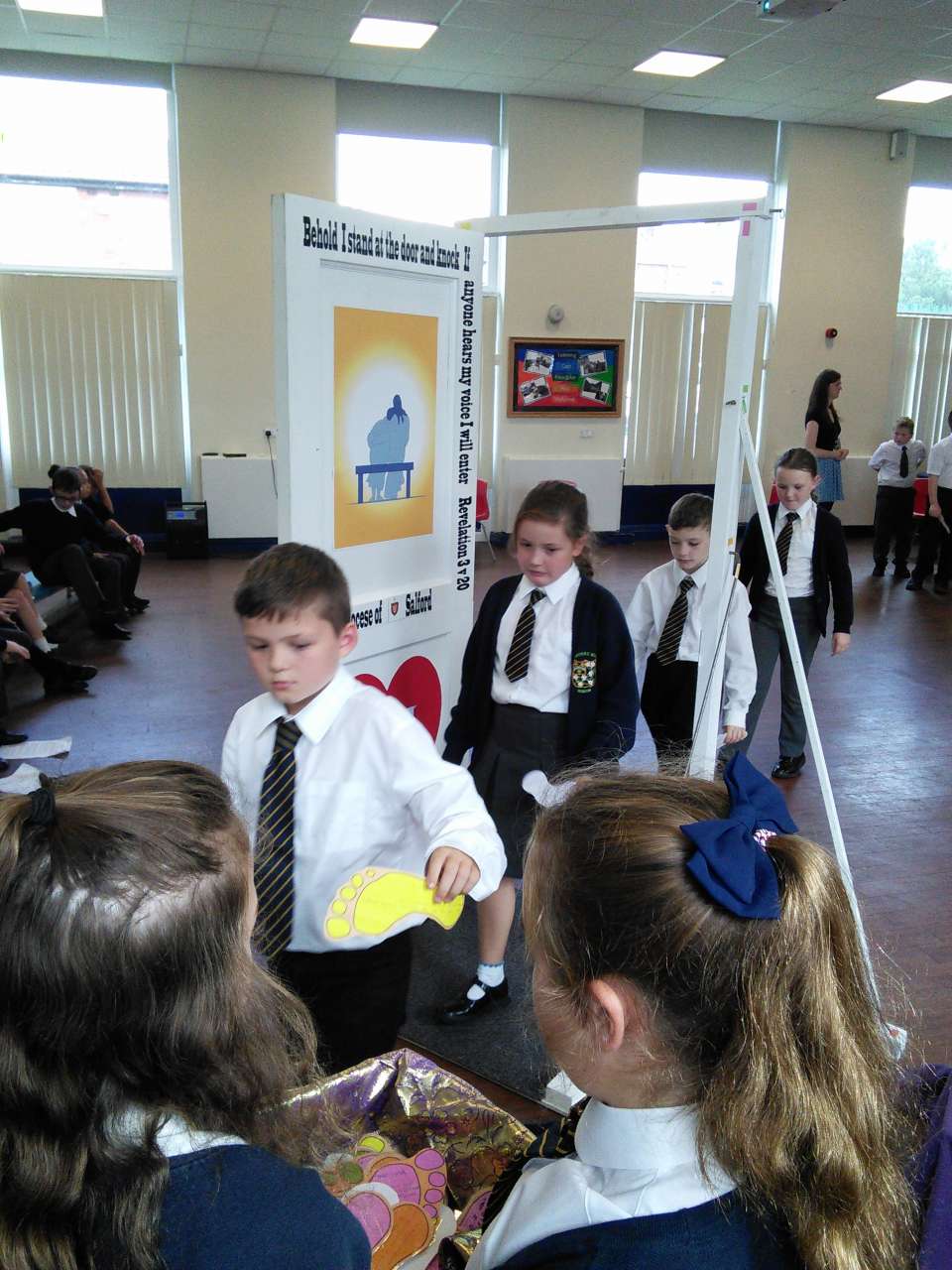 St. Mary’s welcomed the Door of Mercy to our school yesterday afternoon. The door, which was commissioned by the Pope in Rome has been travelling around the diocese from school to school over the recent months as part of the Church’s ‘Year of Mercy’. Children from year 6 led the school in a collective worship before each walked through the door and added their own prayer asking for forgiveness to the basket.