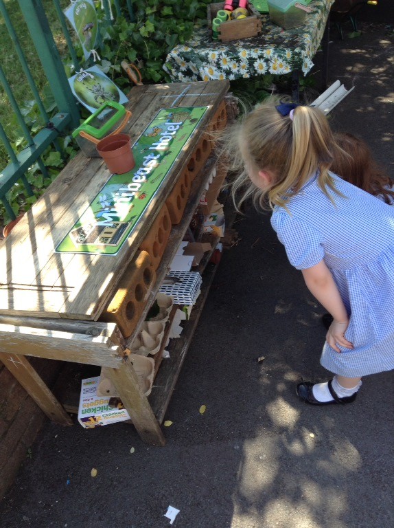 In F2 we are learning all about minibeasts! We have talked about different minibeasts, observing the details in photos and making pictures of them. We have been solving minibeast “What am I?” puzzles and writing our own. We have been finding information from non-fiction books and learning lots of different things. We have started to learn about different habitats and we have made a bug hotel for minibeasts outdoors. We are looking forwards to doing lots of minibeast hunting around our school grounds!