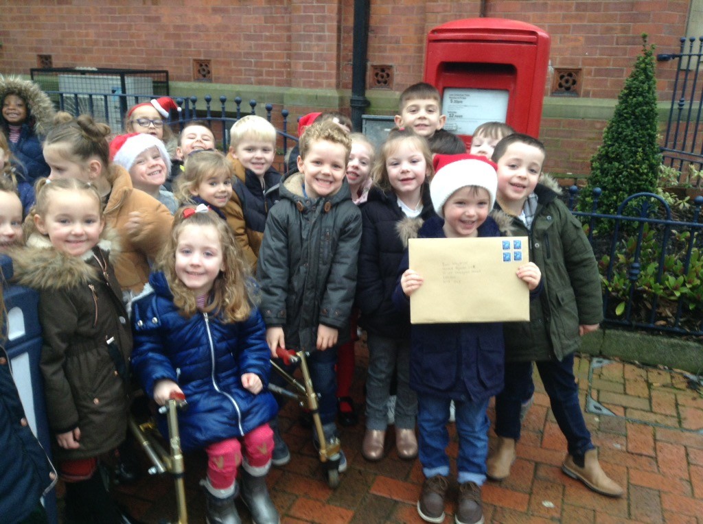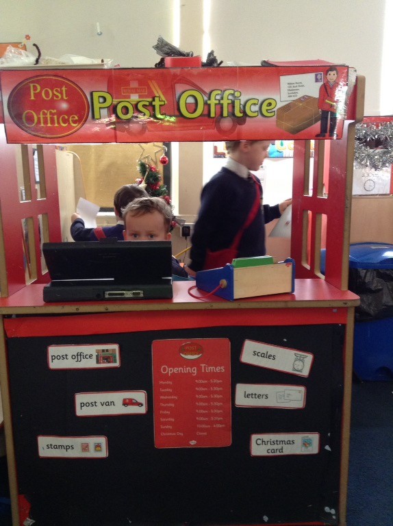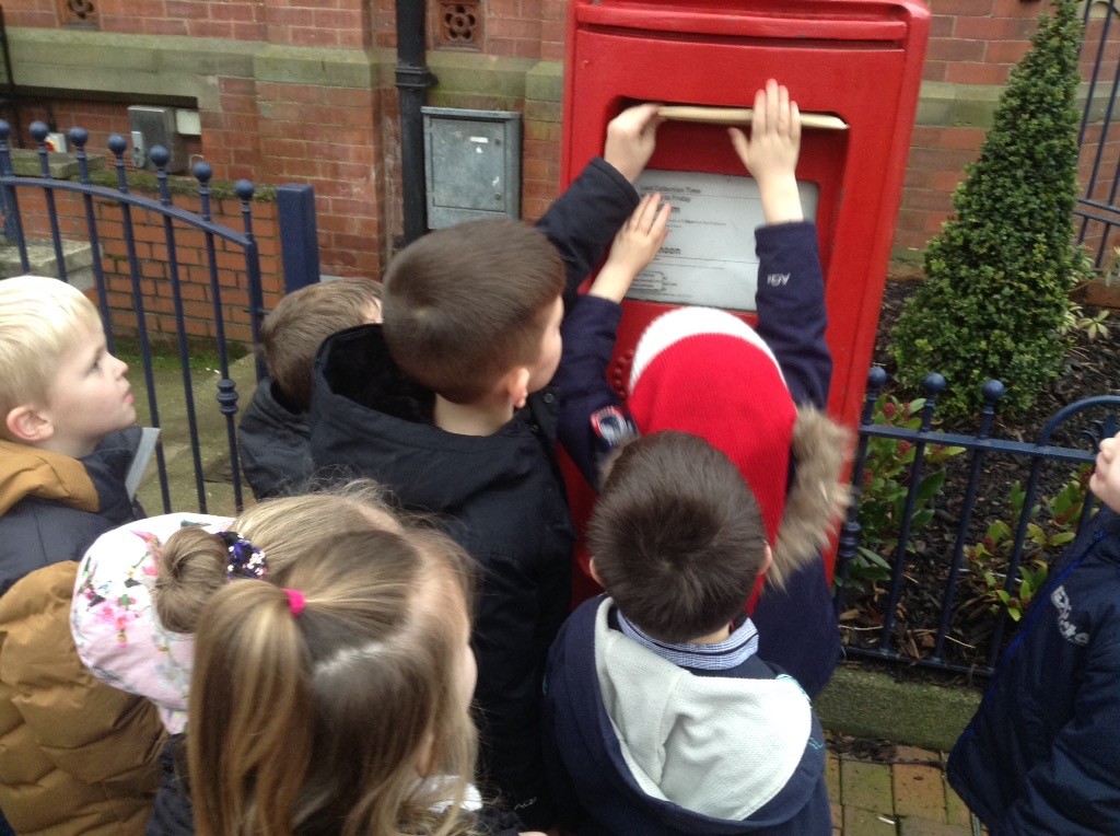 We have also been learning about the journey of a letter. We learned about what happens when we post a letter or a card and have enjoyed being postal workers in our post office role play area. We decided to take a trip to our local post box to post our vehicle designs to Ian Whybrow to pass on to the Christmas Bear.