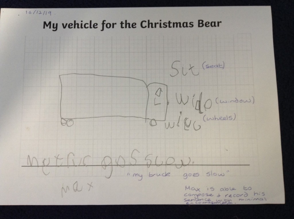 Here in F2 we have had an exciting present in our classroom from Santa himself – a special book called The Christmas Bear by Ian Whybrow. In the story, The Christmas Bear gets left behind in Santa’s workshop and has to travel many miles to catch up with him in his sleigh. The children have made maps to help the Christmas Bear to find his way. We also decided to design and and make some new vehicles for the Christmas Bear so that he would never be left behind again!