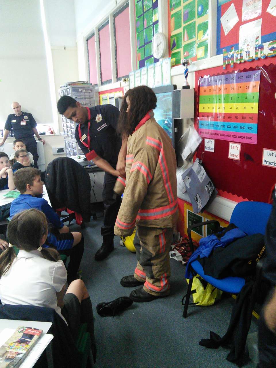 Year 6 were visited by the fire crew from Hyde Fire station to receive a talk on staying safe during the firework season. During the talk the children asked some impressive questions and showed that they had a good knowledge of what to do and what not to do as well as learning more extremely useful information. In addition, during the visit, the children had the chance to try on some of the equipment and had a look around the fire engine . Thank you to the firemen for giving up their time to visit us.