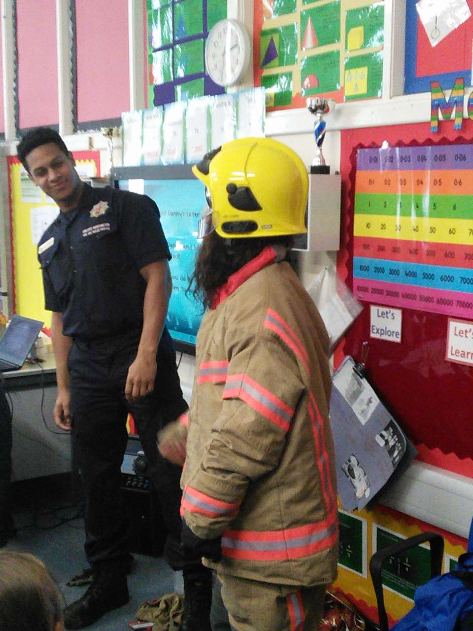 Year 6 were visited by the fire crew from Hyde Fire station to receive a talk on staying safe during the firework season. During the talk the children asked some impressive questions and showed that they had a good knowledge of what to do and what not to do as well as learning more extremely useful information. In addition, during the visit, the children had the chance to try on some of the equipment and had a look around the fire engine . Thank you to the firemen for giving up their time to visit us.