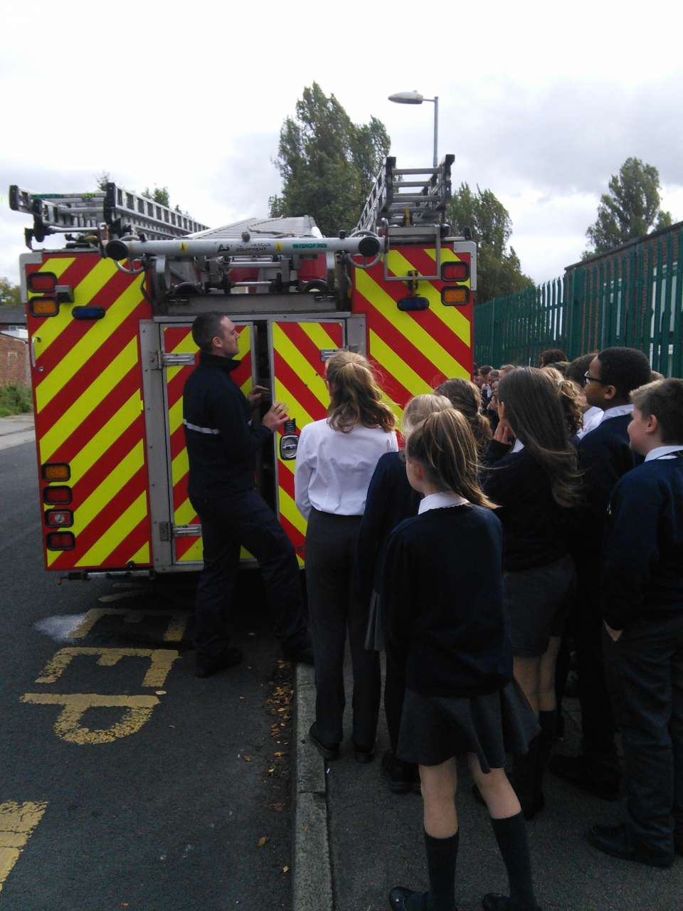 Year 6 were visited by the fire crew from Hyde Fire station to receive a talk on staying safe during the firework season. During the talk the children asked some impressive questions and showed that they had a good knowledge of what to do and what not to do as well as learning more extremely useful information. In addition, during the visit, the children had the chance to try on some of the equipment and had a look around the fire engine . Thank you to the firemen for giving up their time to visit us.