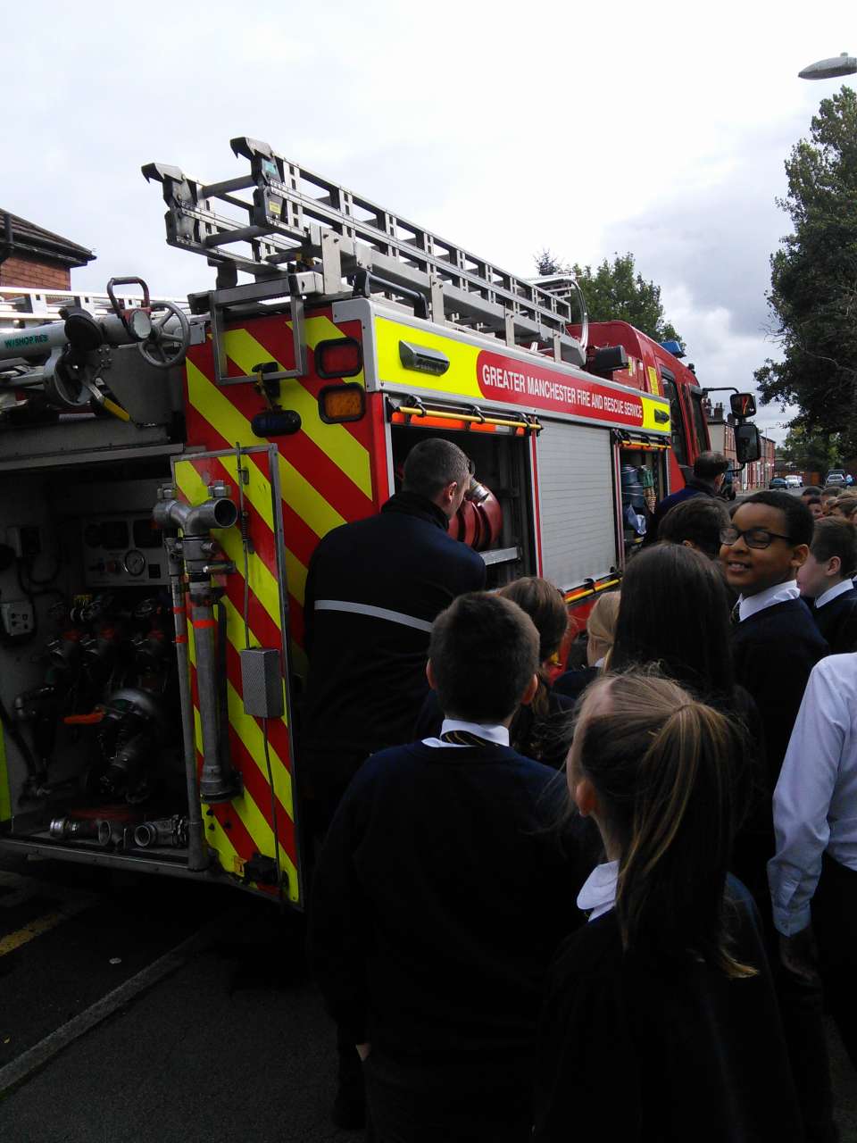 Year 6 were visited by the fire crew from Hyde Fire station to receive a talk on staying safe during the firework season. During the talk the children asked some impressive questions and showed that they had a good knowledge of what to do and what not to do as well as learning more extremely useful information. In addition, during the visit, the children had the chance to try on some of the equipment and had a look around the fire engine . Thank you to the firemen for giving up their time to visit us.