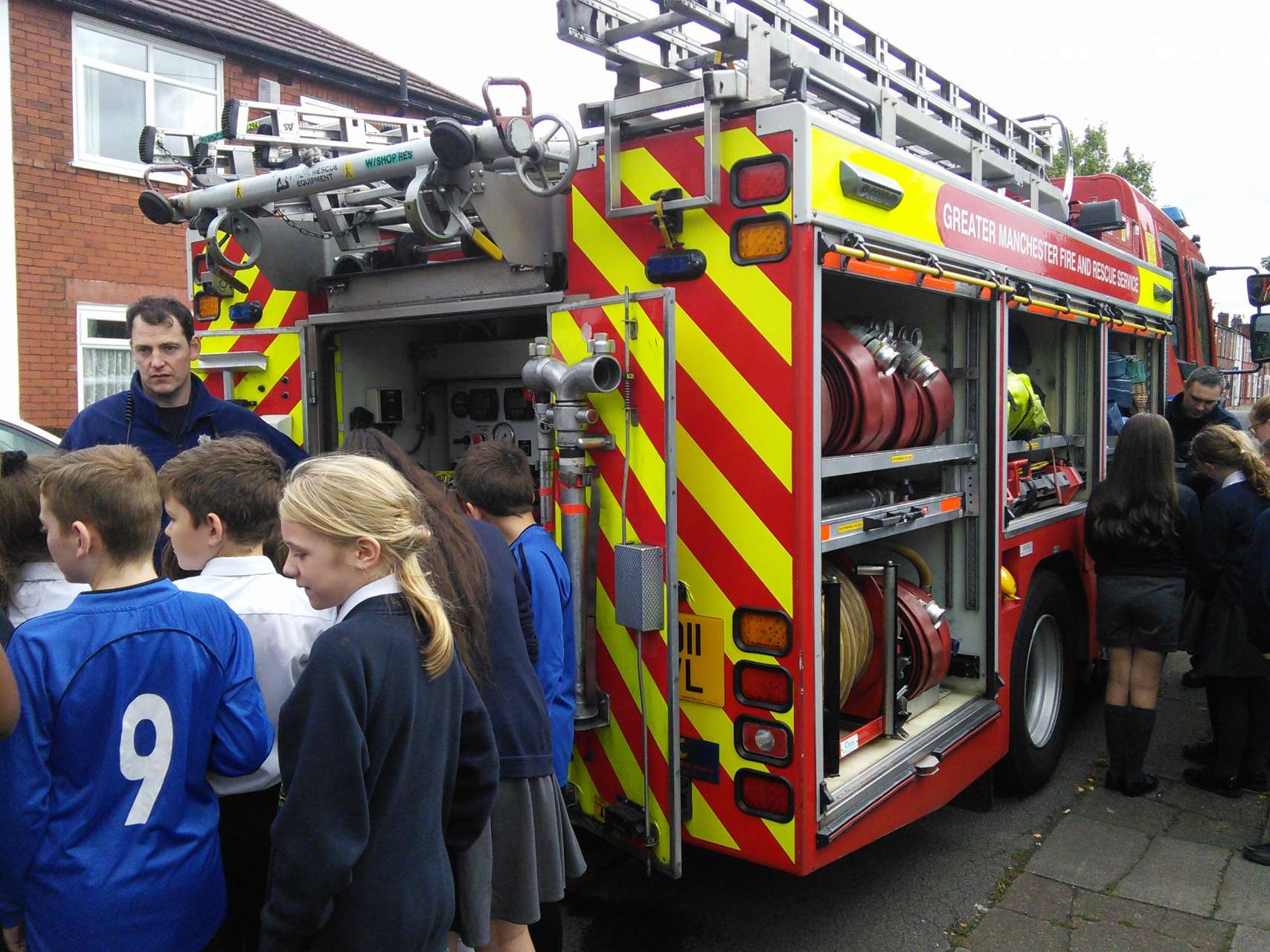 Year 6 were visited by the fire crew from Hyde Fire station to receive a talk on staying safe during the firework season. During the talk the children asked some impressive questions and showed that they had a good knowledge of what to do and what not to do as well as learning more extremely useful information. In addition, during the visit, the children had the chance to try on some of the equipment and had a look around the fire engine . Thank you to the firemen for giving up their time to visit us.