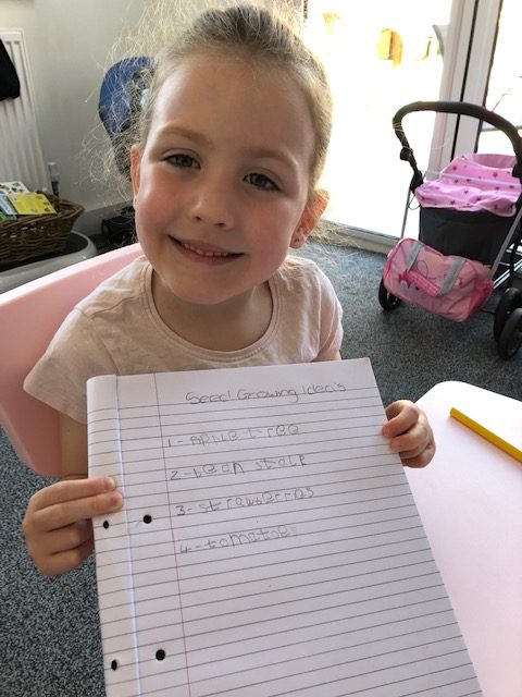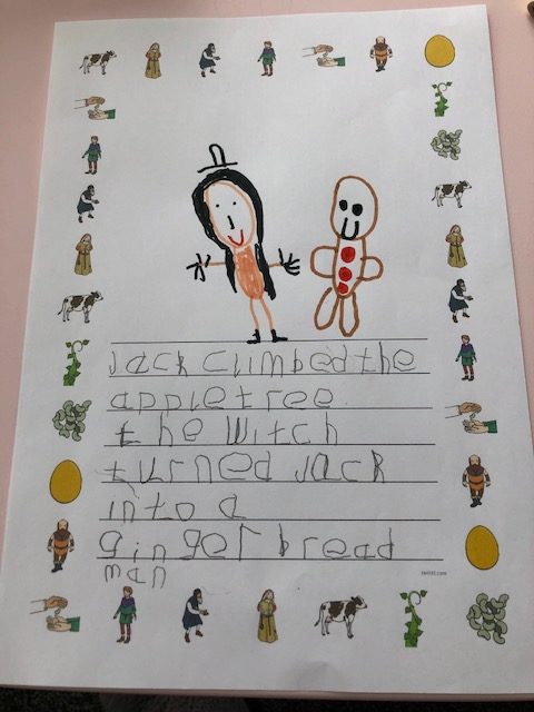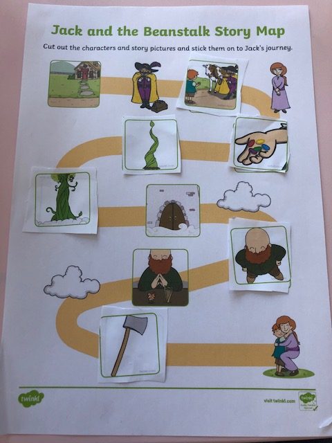 Before school closed children in F1 took home a seed and planted it. Ellen has sent in this photo of hers which is now 45cm high! Each morning she is counting the leaves t see if it has grown. also, Lottie has been enjoying reading about Jack and the Beanstalk, rearranging jumbled sentences, making story maps and written her own idea for the story. Finally, Frankie has been acting Goldilocks and the Three Bears, putting them to bed and feeding them porridge and looking at different sized chairs, beds and bowls.