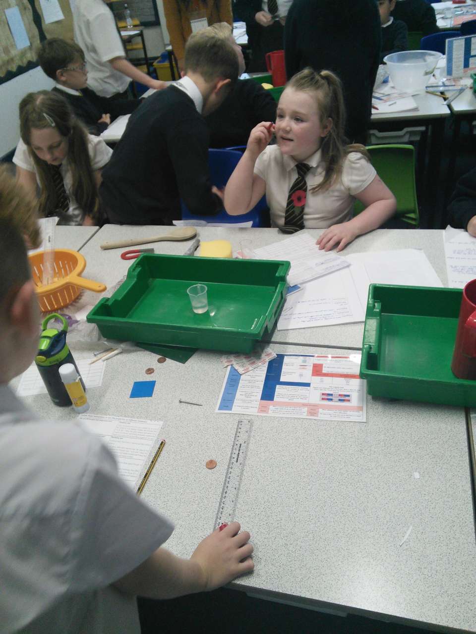 based on their properties and finding definitions for various words. Following this they then tested the objects for hardness, permeability, flexibility, transparency and magnetism before finalyy discussing if they were fit for purpose.