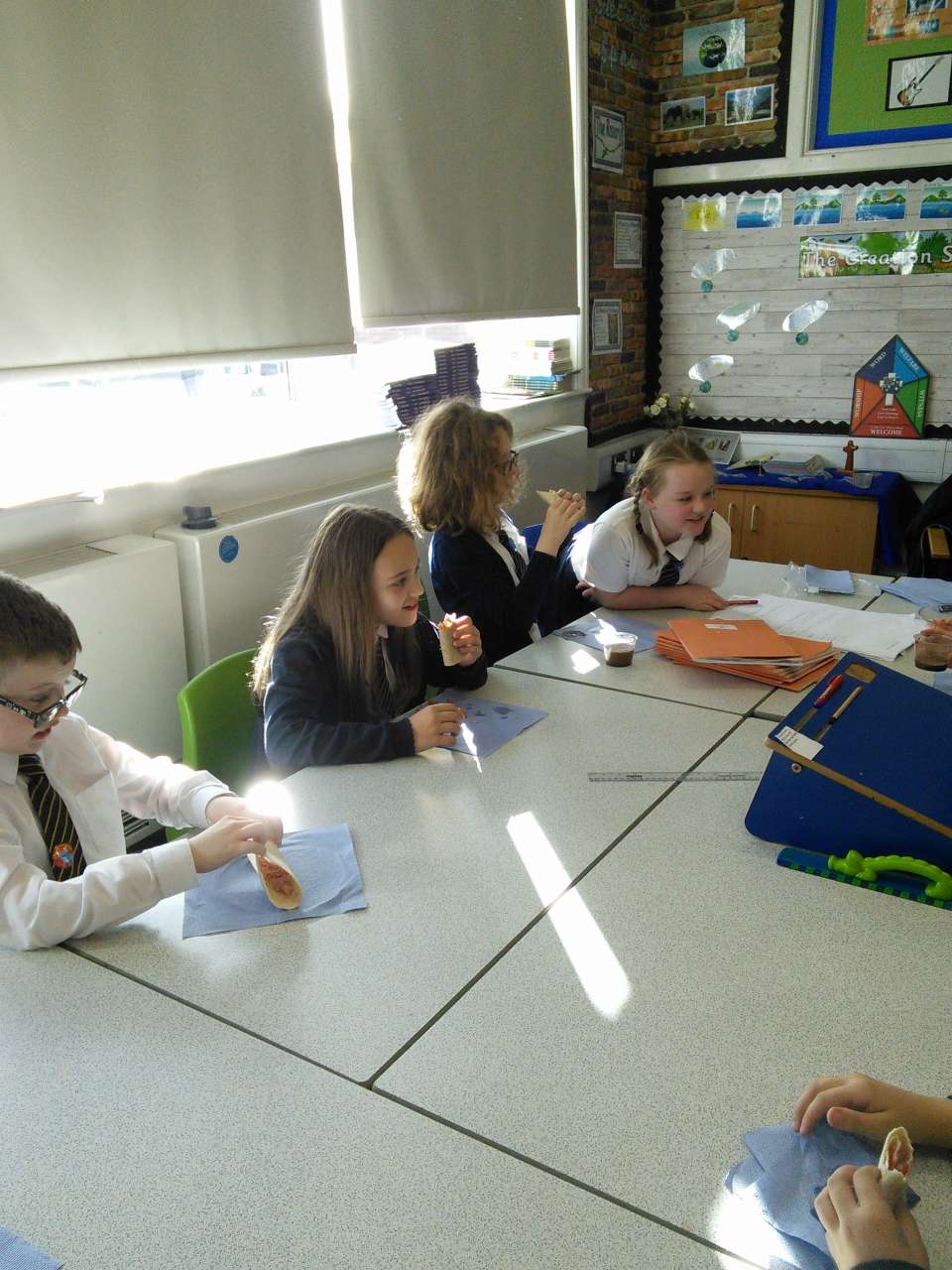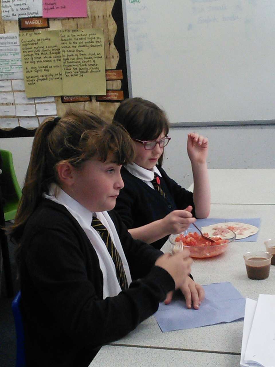 After studying the Mayans for a number of weeks =, Year 5’s work has culminated in them getting to try out some recipes similar to those the Mayans would have eaten. This included eating totillas made from corn (as maize was a staple of the Mayan diet), making a salsa and getting to try an ancient Mayan recipe for hot chocolate which included, cinnamon, honey and chilli!