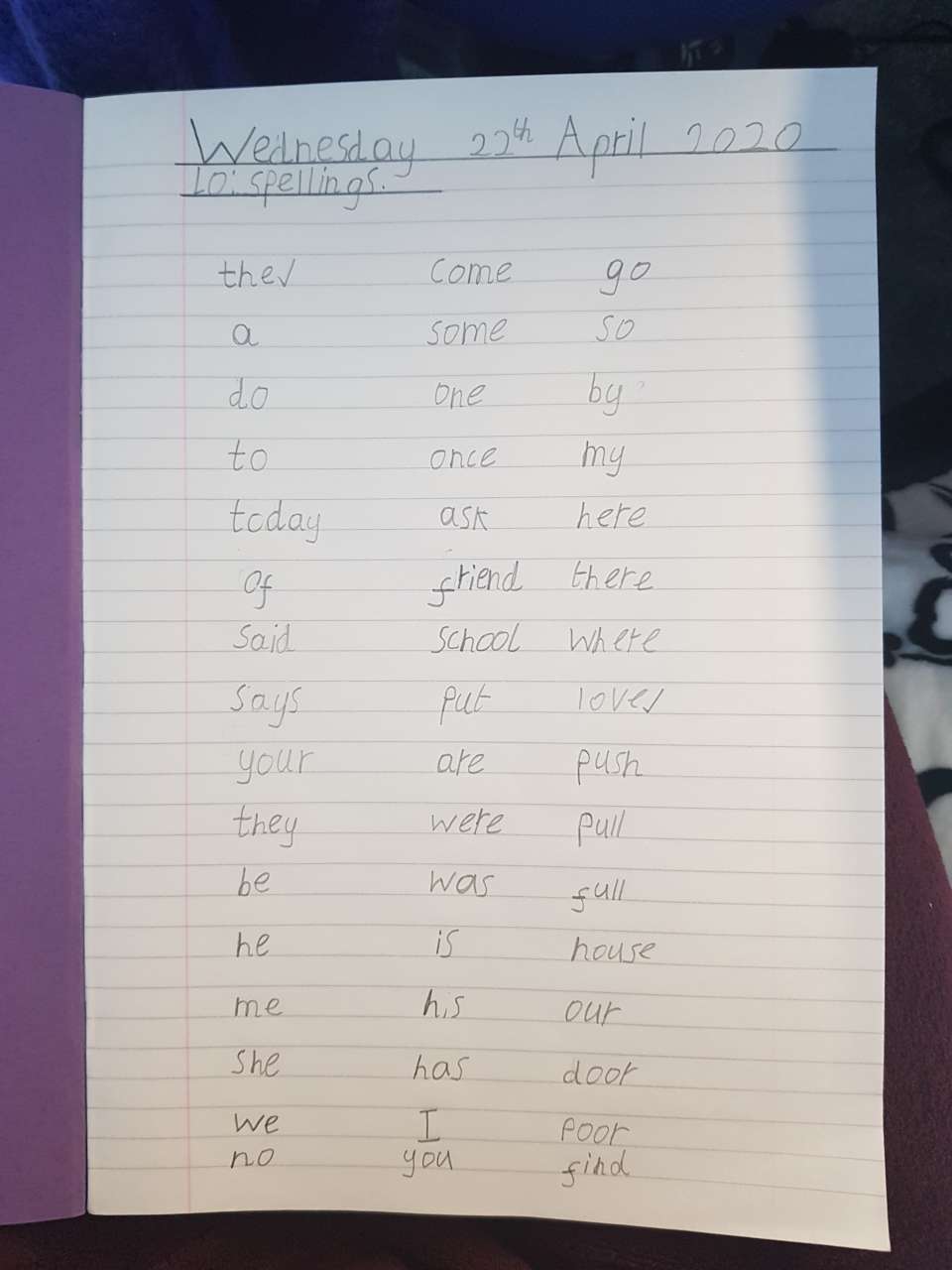 Matteo has obviously been busy at home doing a range of maths, spelling and writing. Keep it up Matteo – Mr Whittle is very impressed with your handwriting especially.