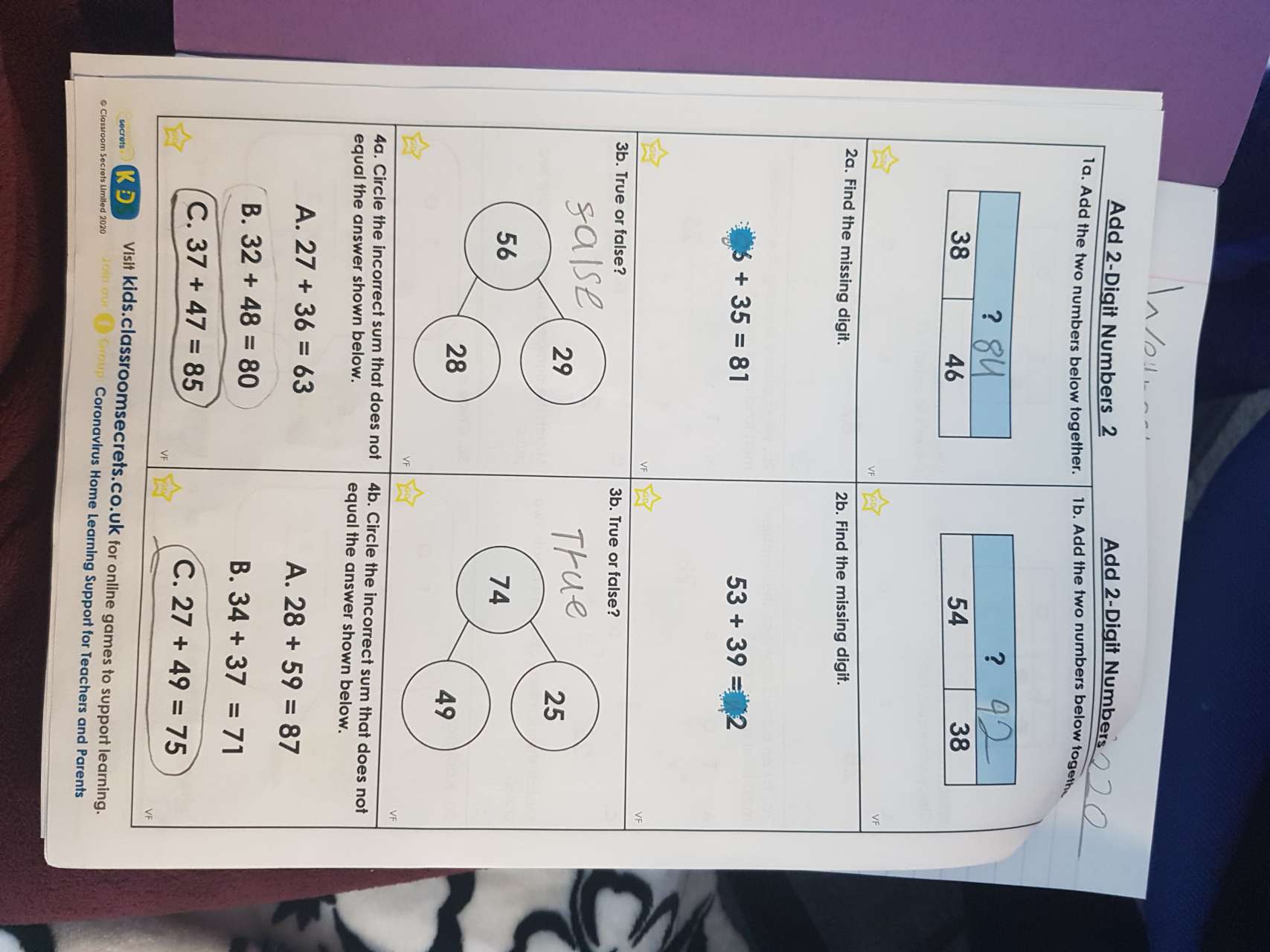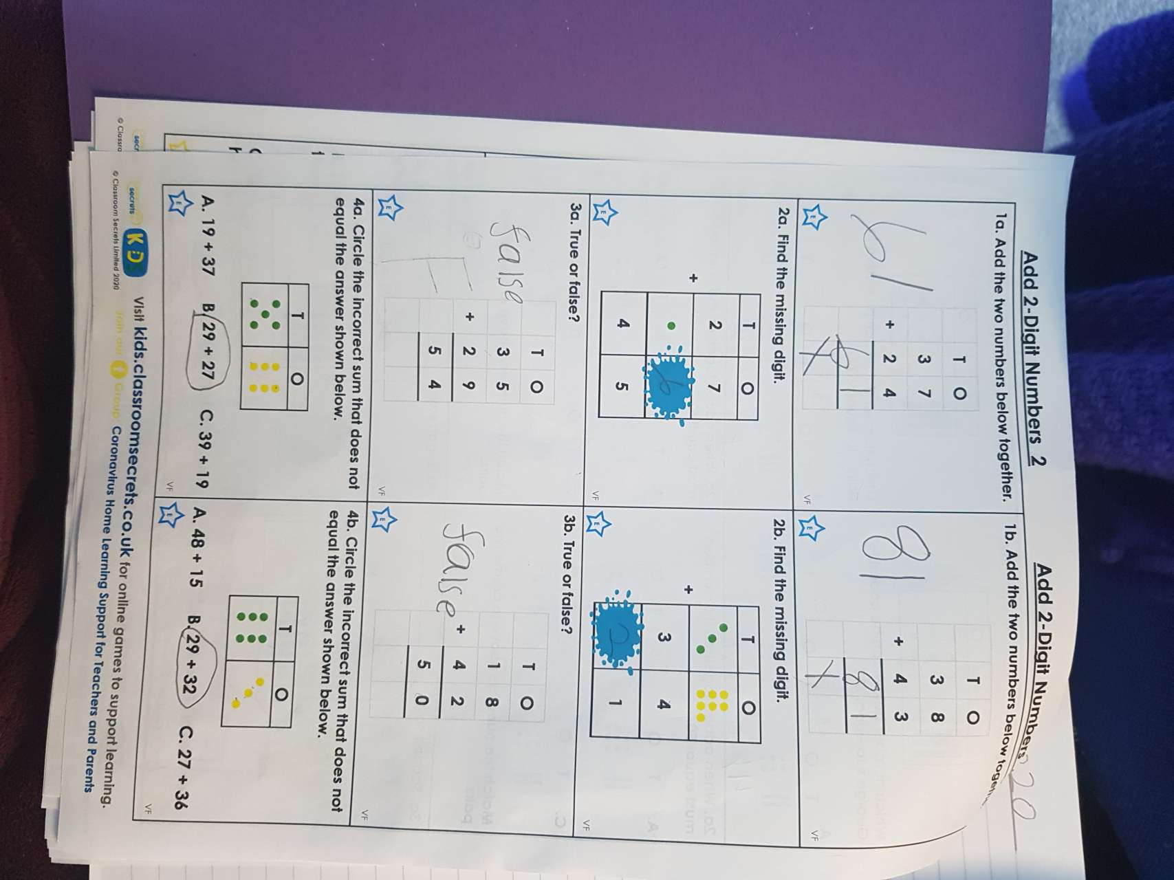 Olly and Faith have both been hard at work at home. Olly has been keeping up with his maths whilst Faith has been mixing colours in her artwork.