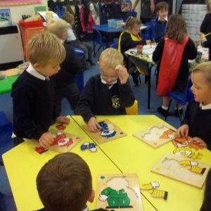 F2 joined the whole school for “No Pens Wednesday” – no writing materials for a whole day! This gave us a chance to really focus on our speaking and listening skills, which is always important focus in EYFS. We sequenced our story of Elmer, using pictures to retell it. We looked at farm pictures, sorting them and making observations. We followed instructions and played turn taking games on our maths table. We are working hard on recognising all our numbers to 10 and beyond. we all missed our pens but had lots of fun.