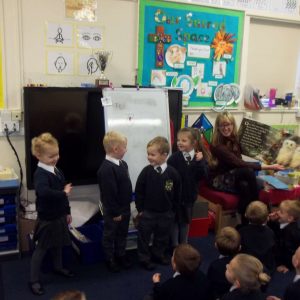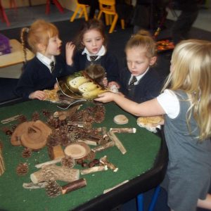 We have been thinking all about Autumn here in EYFS. In F2 we have been looking carefully at the changes in our environment, as well as finding information from non-fiction books and the internet. We are looking at the story of Owl Babies. We have been acting it out and retelling the story using puppets. We are writing more and more using our growing phonics and have been writing speech bubbles, for the owls in the story. In maths we are learning our 3D shapes and our teens numbers, as well as estimating and counting groups of objects. We have also had lots of fun making autumn colours, making leaf rubbings and making models of woodland animals and dens.
