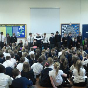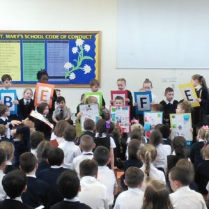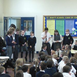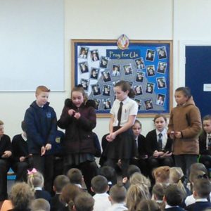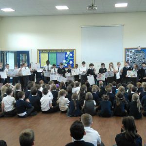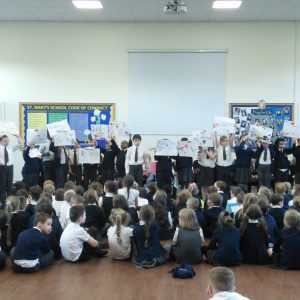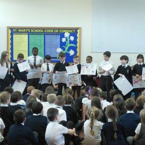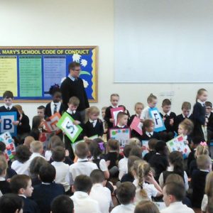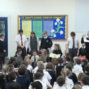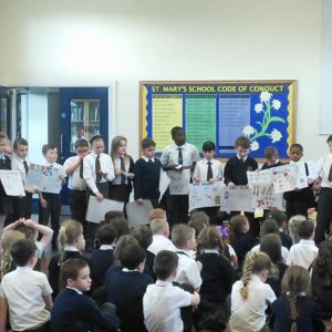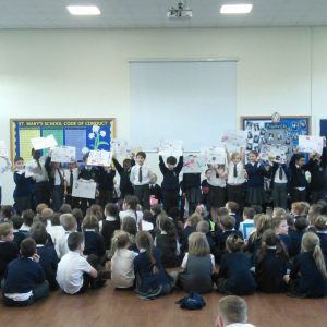 St. Mary’s took part in Safer Internet Day 2017 yesterday to highlight the the dangers of the internet and to inform us of how we can stay safe. After taking part in lessons and activities in class, each class then presented to the rest of the school and parents what they had learnt. Year 1 said a rhyme to advise us to ‘tell our mummies’ and made informative posters; year 2 led us in an acrostic poem entitled ‘Be Safe’; Year 3 advised on what pictures to publish; Year 4 gave us detailed information and posters about staying safe; Year 5 performed a poem entitled ‘Highs and Woes’ which highlighted both the good and bad sides of the internet and Year 6 performed some sketches explaining the pitfalls of posting pictures online and what children should do.