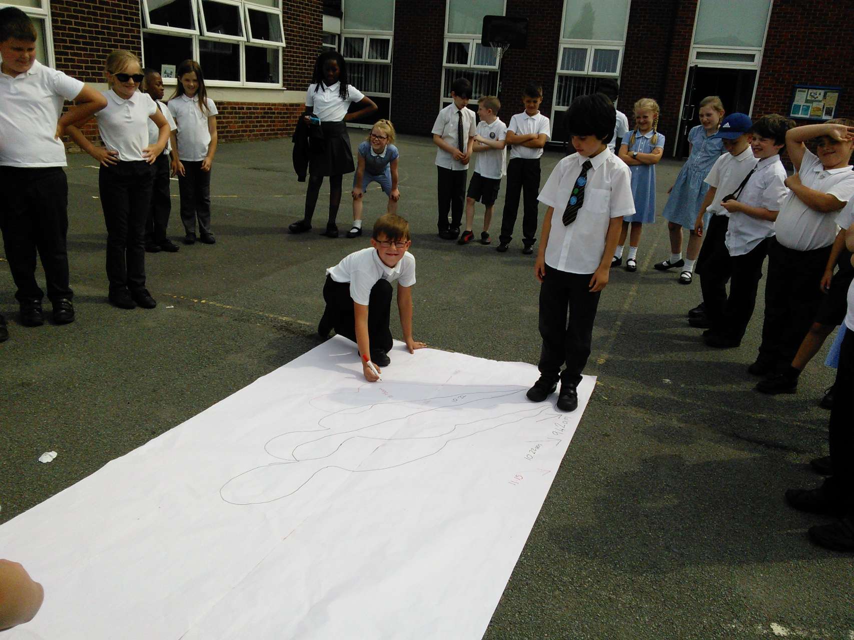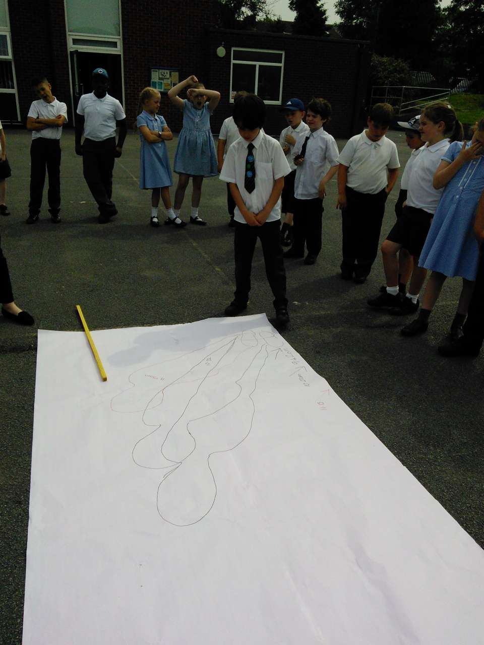 During Science Week, Year 4 have been learning how shadows are formed. By drawing around the shadow of one of the children at different times during the morning, we could see how the position and size of the shadow had changed. We are learning that this due to the fact that as the earth rotates the sun appears to change position in the sky.