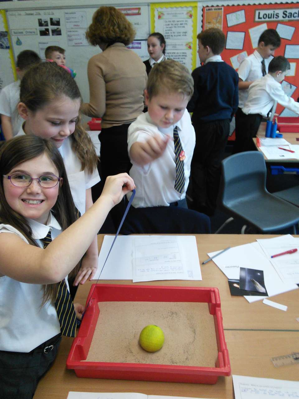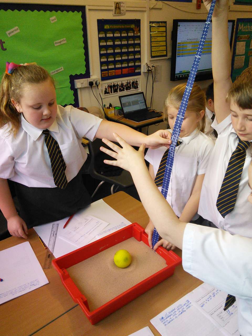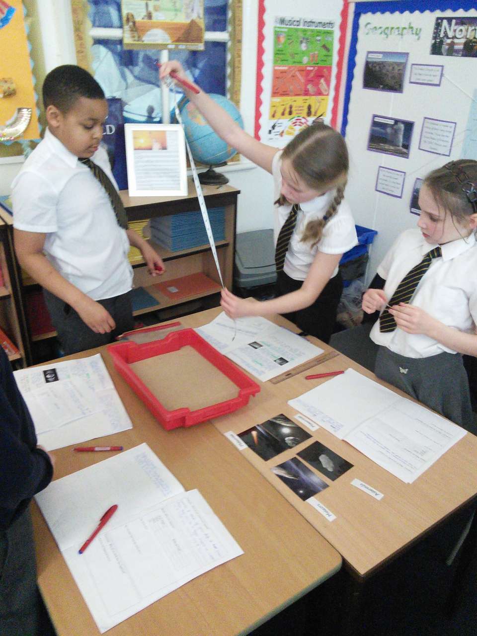 Year 5 have been learning about Space and have been finding out about the moon’s surface. This week, they planned an investigation to find how craters are formed and whether the distance a meteorite is away its surface, impacted on the size of the crater made. After ensuring it was a fair test and they had a clear method, each group worked accurately to measure and their record what they found out. Each group then imputed their results into a spreadsheet so we could work the class averages and draw a conclusion. As most children predicted, their results showed that the further a meteorite is away from the moon’s surface, the bigger the crater it will make. The experiment really showed the children the importance of comparing results and repeating an experiment more than once- just like real scientists do!