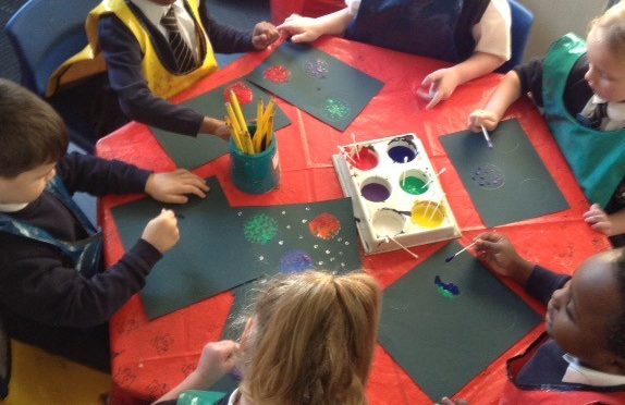 In F2 we have been very creative with our new space theme. We have been learning about pointillism. We looked at some pointillism pictures by some famous artists, then used our computer as well as different books to look at different images of space. Then we were ready to create our own pointillism pieces using cotton buds and paint. We started by decorating stars using pointillism, then moved onto creating our own space scenes. We are very proud of our art!