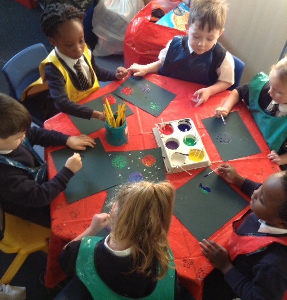 In F2 we have been very creative with our new space theme. We have been learning about pointillism. We looked at some pointillism pictures by some famous artists, then used our computer as well as different books to look at different images of space. Then we were ready to create our own pointillism pieces using cotton buds and paint. We started by decorating stars using pointillism, then moved onto creating our own space scenes. We are very proud of our art!