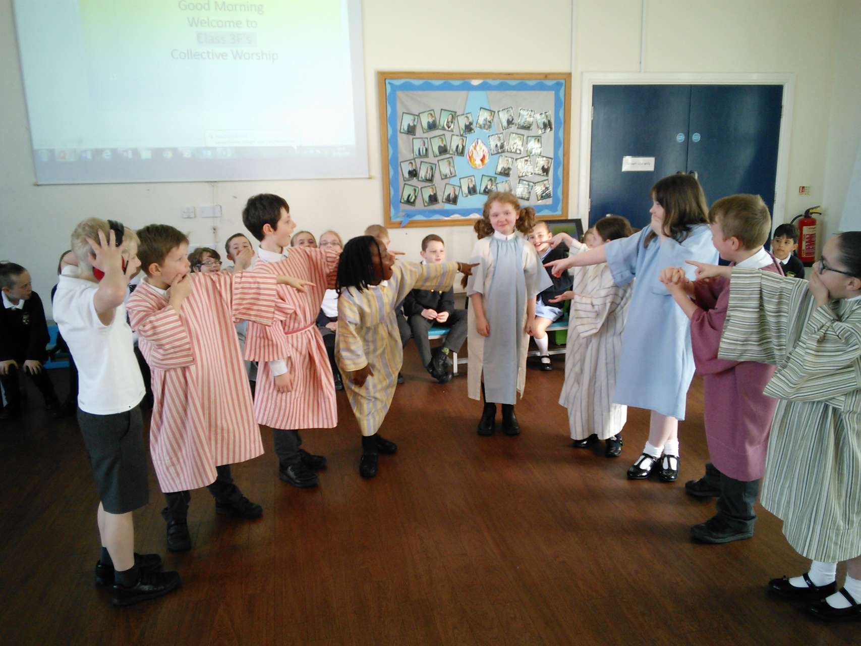 In their Collective Worship, year 3 told the story of the Resurrection and how Jesus appeared to some of his friends on the road to Emmaus. They also told how Thomas would not believe that Jesus had risen from the dead until he had touch the wounds that the nails had made. The children’s singing and acting was excellent and the parents thoroughly enjoyed their collective worship.